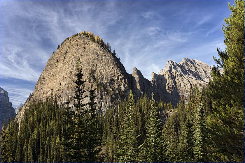 This high resolution photo was taken in the Canadian Rockies near Lake Louise. There is a walk from the great Lake Louise Chatteau up a switch back trail to a wonderful tea house that serves lunch and teas to hikers. The trail is the only way to the teahouse. All the food and building materials are brought up on pack trains.